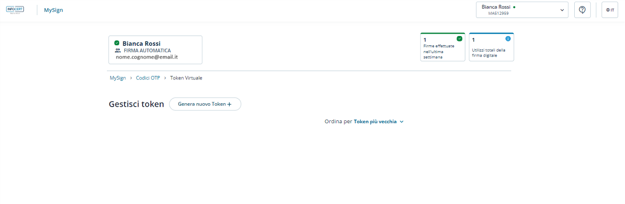 Nella home page di My Sign è possibile gestire il token virtuale entrando nella sezione Codici OTP.