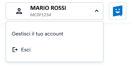 Per eseguire il logout dall'area My Account, fai clic sul tuo nome in alto a destra: Esci.