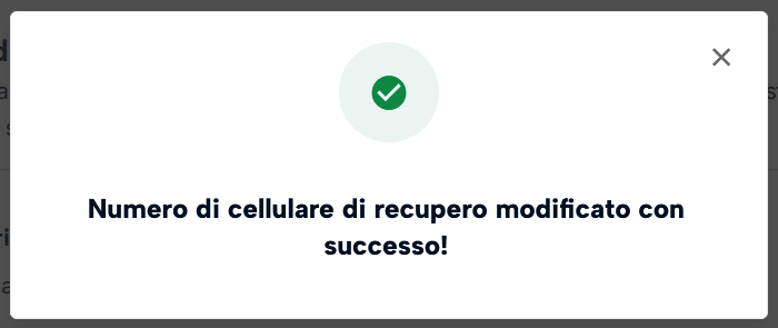 Cliccando su Modifica nel box "Contatti di recupero" puoi modificare il numero di cellulare valido per recuperare le informazioni del tuo account di Firma.