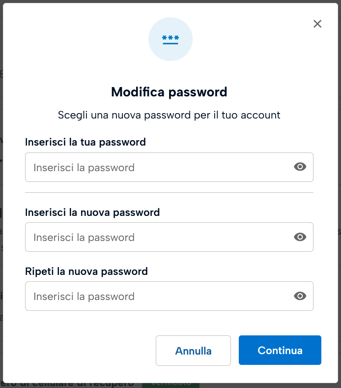 Cliccando su Modifica nel box "Password e sicurezza" puoi modificare la password collegata al tuo account di firma.