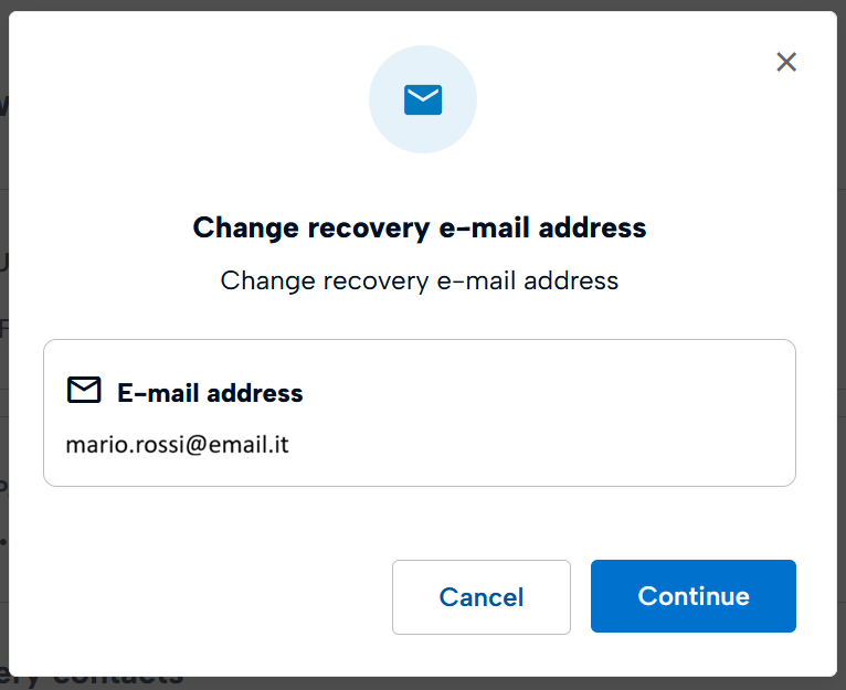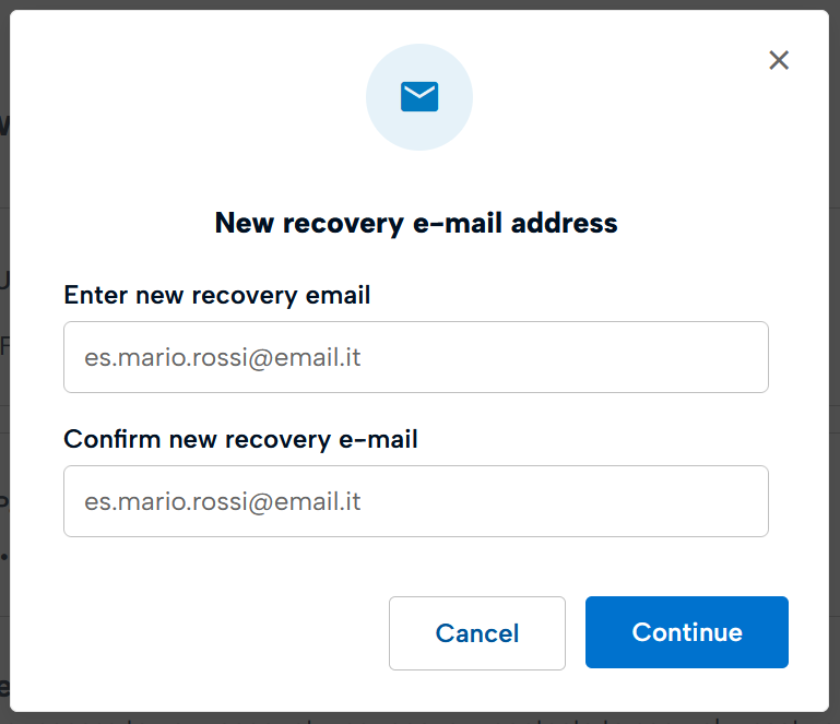 Enter your new recovery email address and click Continue.