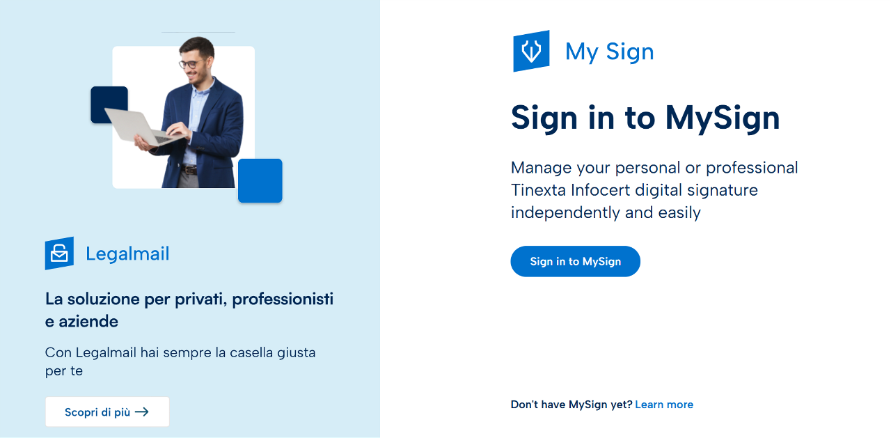 To access the management portal of your remote signing certificate, you must connect to the My Sign site.