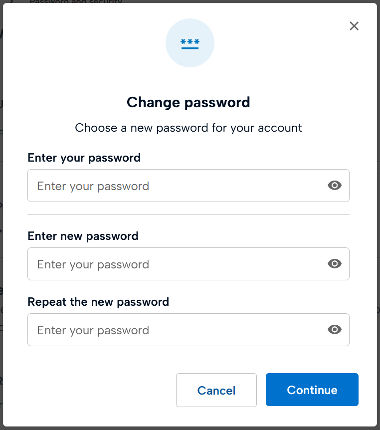 By clicking on the "Password and security" box you can: