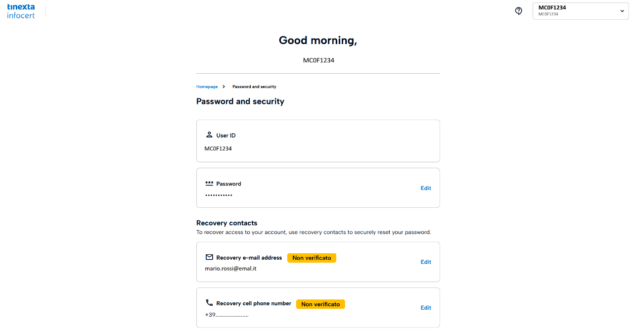The User ID is the one assigned by InfoCert (available both in the Registration Request and in the confirmation email that arrived immediately after registering my data).