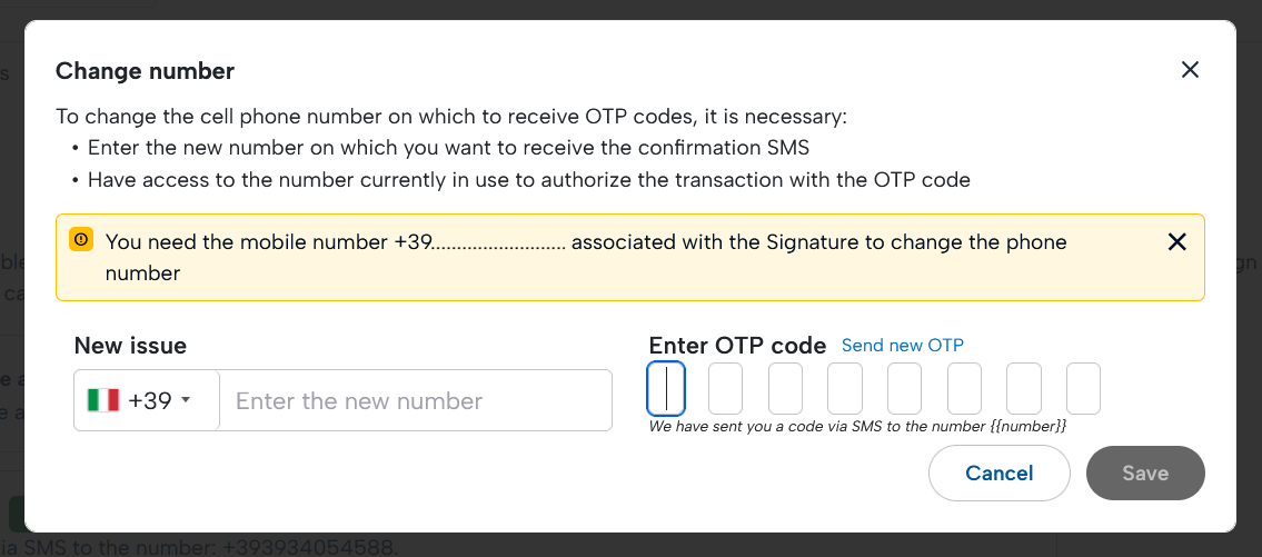 In this section you can choose the OTP reception mode to finalize the Signature operations.