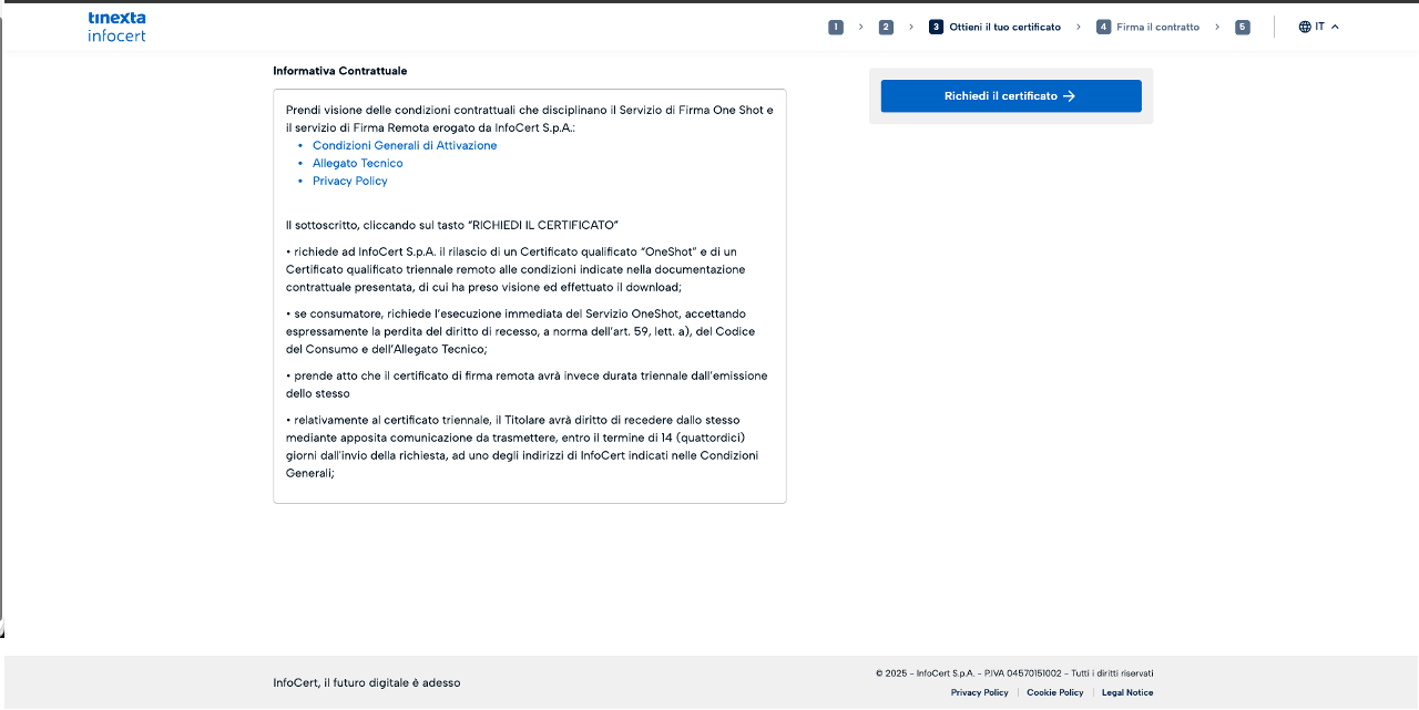 Cliccando il link, l'utente atterra sul portale Tinexta Infocert per avviare il processo: