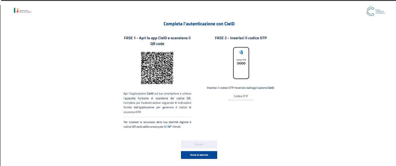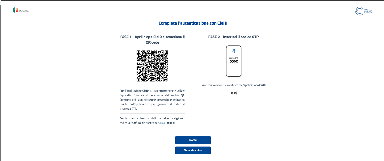 Il processo di richiesta ed emissione con riconoscimento CIE offre la possibilità di identificare il richiedente da remoto tramite un accesso CIE, effettuando l'intero processo in digitale.
