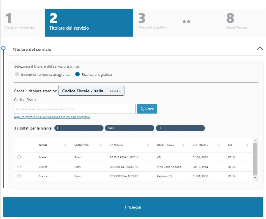 Dopo il controllo delle informazioni relative al documento, all'anagrafica e alla residenza si prosegue cliccando sull' apposito bottone.