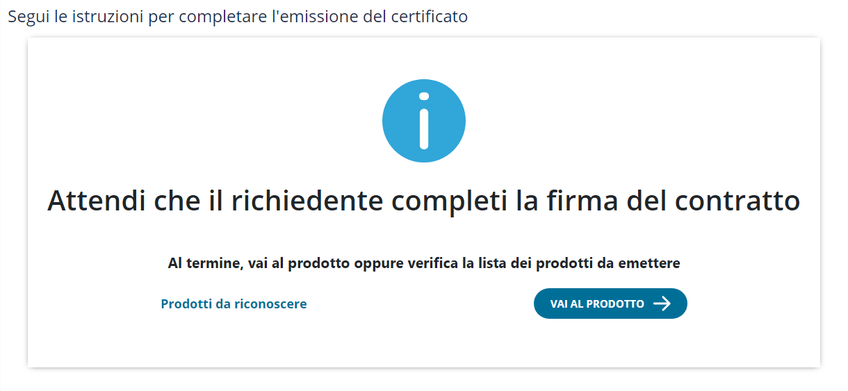 Dopo che l'operatore, IR o RAO ha inserito i dati del titolare, questi riceve una e-mail all'indirizzo indicato contenente il link per accedere alla procedura guidata per effettuare il riconoscimento CIE; successivamente il titolare procede alla firma del modulo di richiesta tramite codice OTP. Una volta concluso il processo correttamente, il RAO può emettere il certificato anche in un secondo momento.