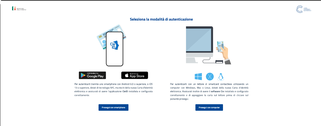 Il soggetto si autentica con CIE premendo il pulsante "Entra con CIE".